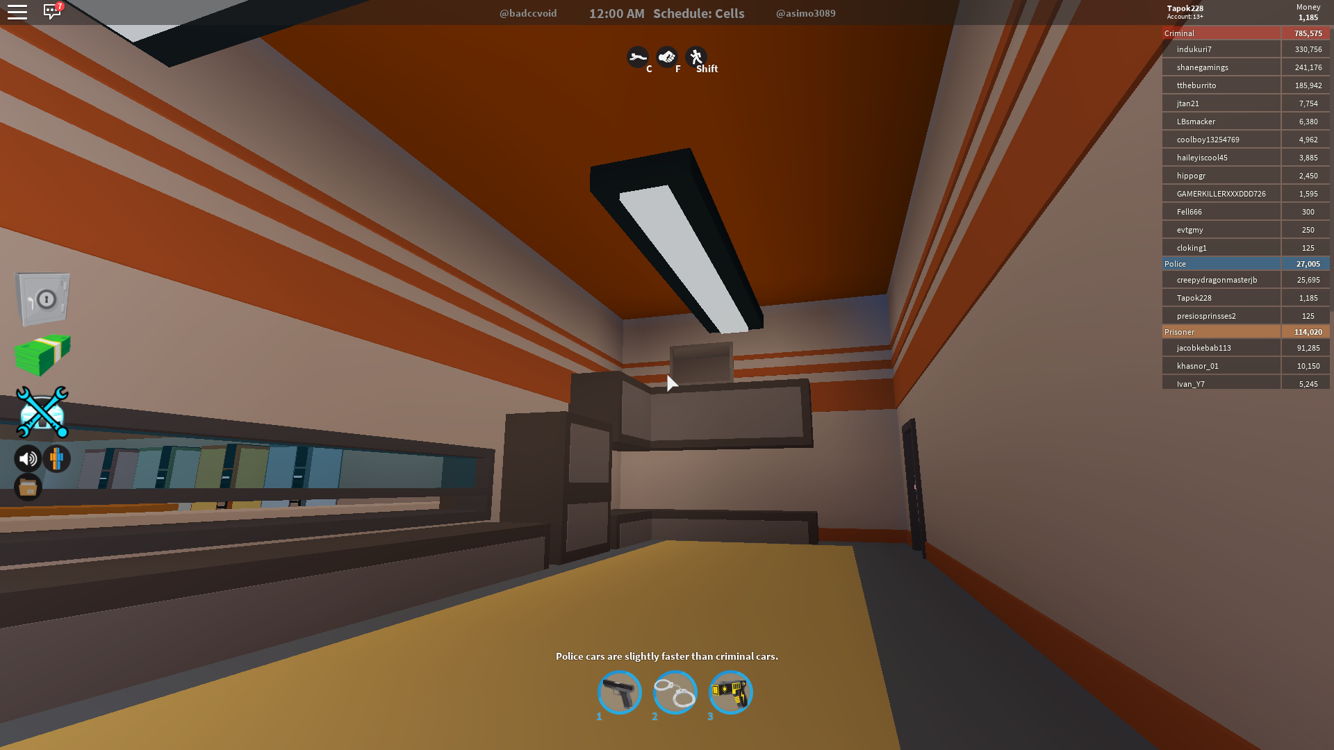 Электрошокер - при попадании заключенный/криминал падает. Работает только на заключенных и криминалах, даётся только полицейским, но раньше был баг, где заключенный мог получить тазер, но он не работал)
