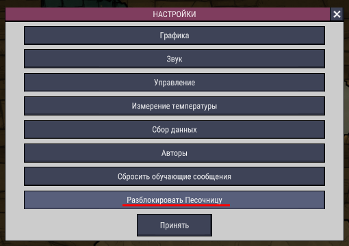 Зайдите в настройки игры и разблокируйте песочницу.