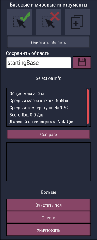 Очистить пол — уничтожает ресурсы, лежащие на полу.